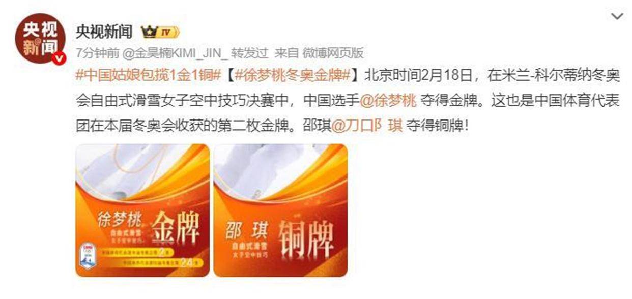 中国国家队官方第一时间发文祝贺:“18岁那年,你不知道这条路有多长。 梦里遇陶公,笑看红尘事。 今夜米兰,35岁的你站在这里,桃花,又开了。 恭喜徐梦桃卫冕夺金! ”《人民日报》言简意赅:“祝贺! 徐梦桃夺金,徐梦桃又是第一,祝贺老将徐梦桃。 ”