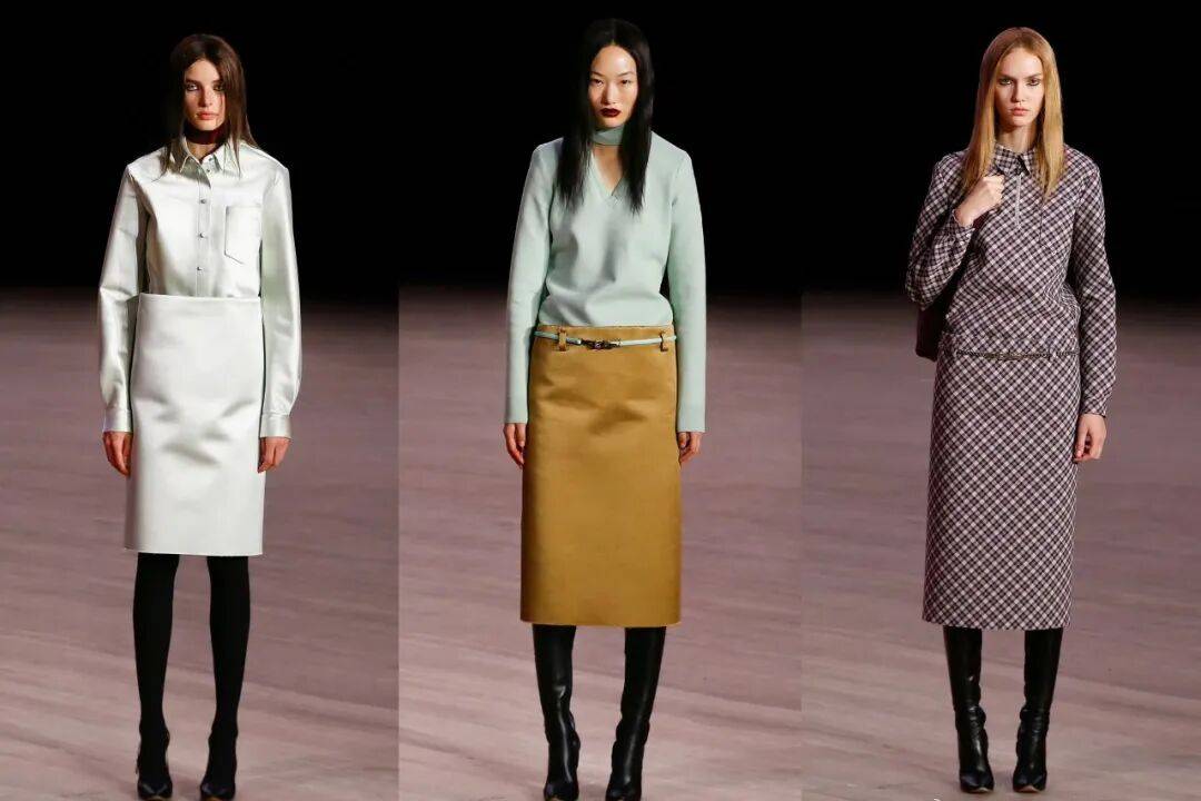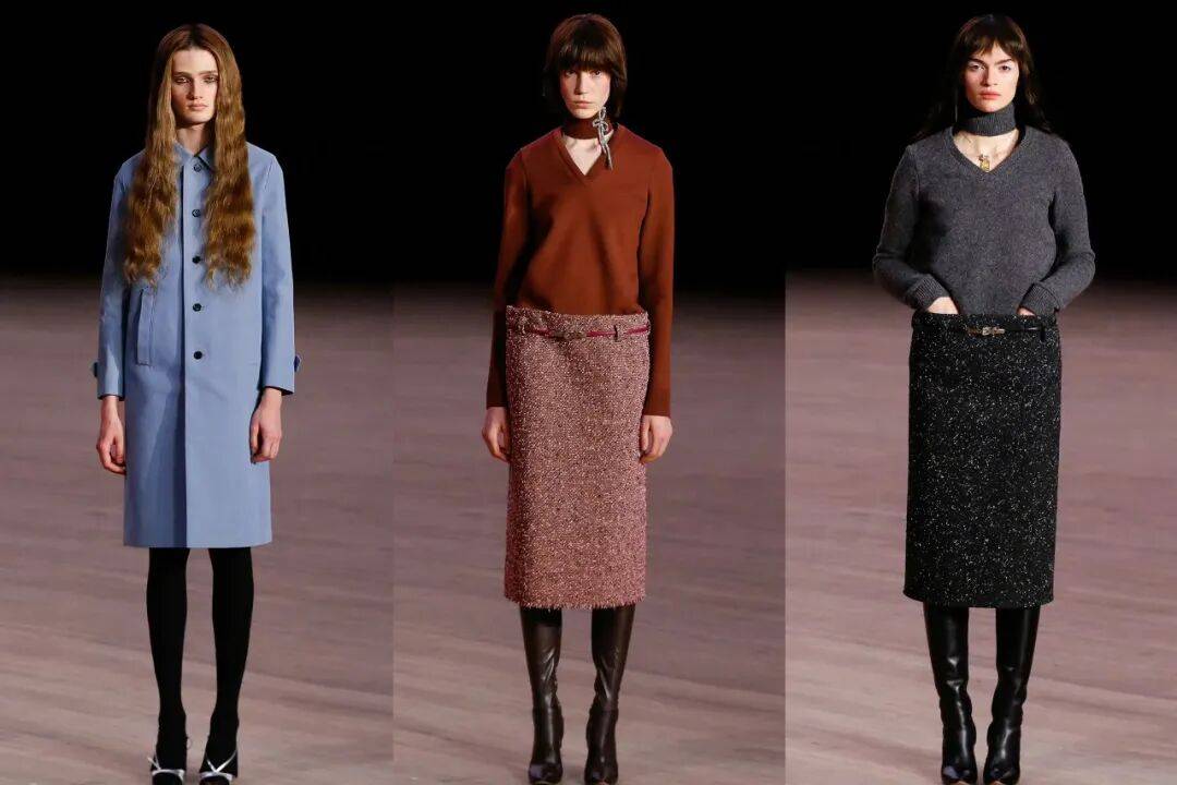 不出所料,过去数季造型夸张、比例怪异的高概念作品不复存在,取而代之的是向九十年代极简美学致意的廓形创新。全系列39套新作,粗花呢套装、可插手的直筒铅笔裙,以及看似未经收腰、彷彿随意裹身的裙装设计,皆向90年代极简精神致意。
