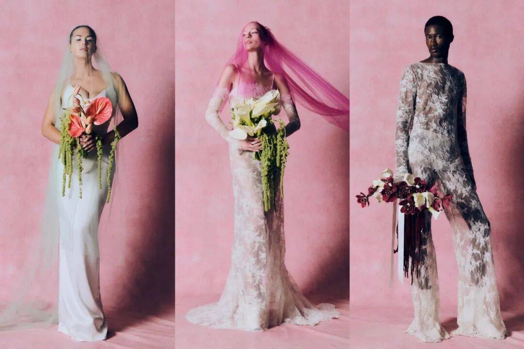而Harris Reed则带来的一场华丽复古的大秀,在本季2026秋冬大秀上,Harris Reed发表全新概念“Fluid Bridal”(流动的婚纱),正式宣告迈入更包容、多元的新篇章。大秀选址Claridge’s Hotel 的舞厅,这是他迄今为止规模最大的一季,共呈现 19 套造型,其中,4套为婚纱设计,其中一套灵感源自他为Camille Charriere打造的第一件定制婚纱。